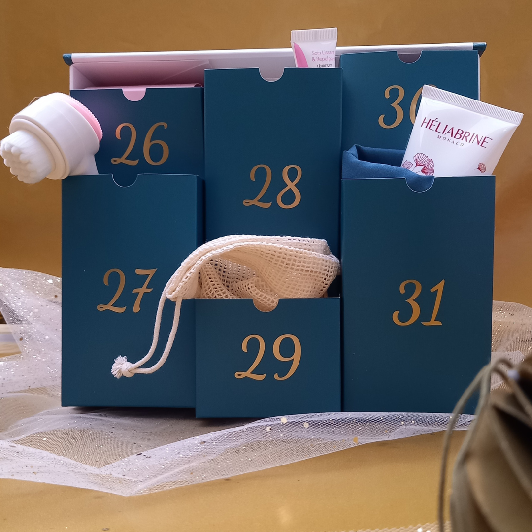 Prolongez les festivités en offrant notre "Calendrier de l'après" spécial hydratation. Il est composé de six cases (26,27,28,29,30 et 31 décembre) et propose accessoires, formats mini et formats vente.